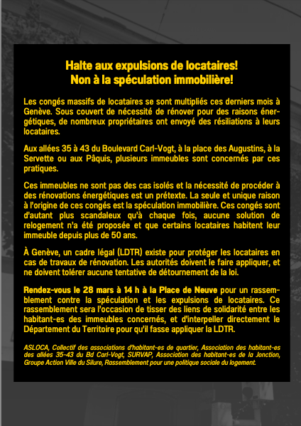 Les locataires et commerçants des immeubles 35-43 Boulevard Carl-Vogt ont reçu une lettre de congé.