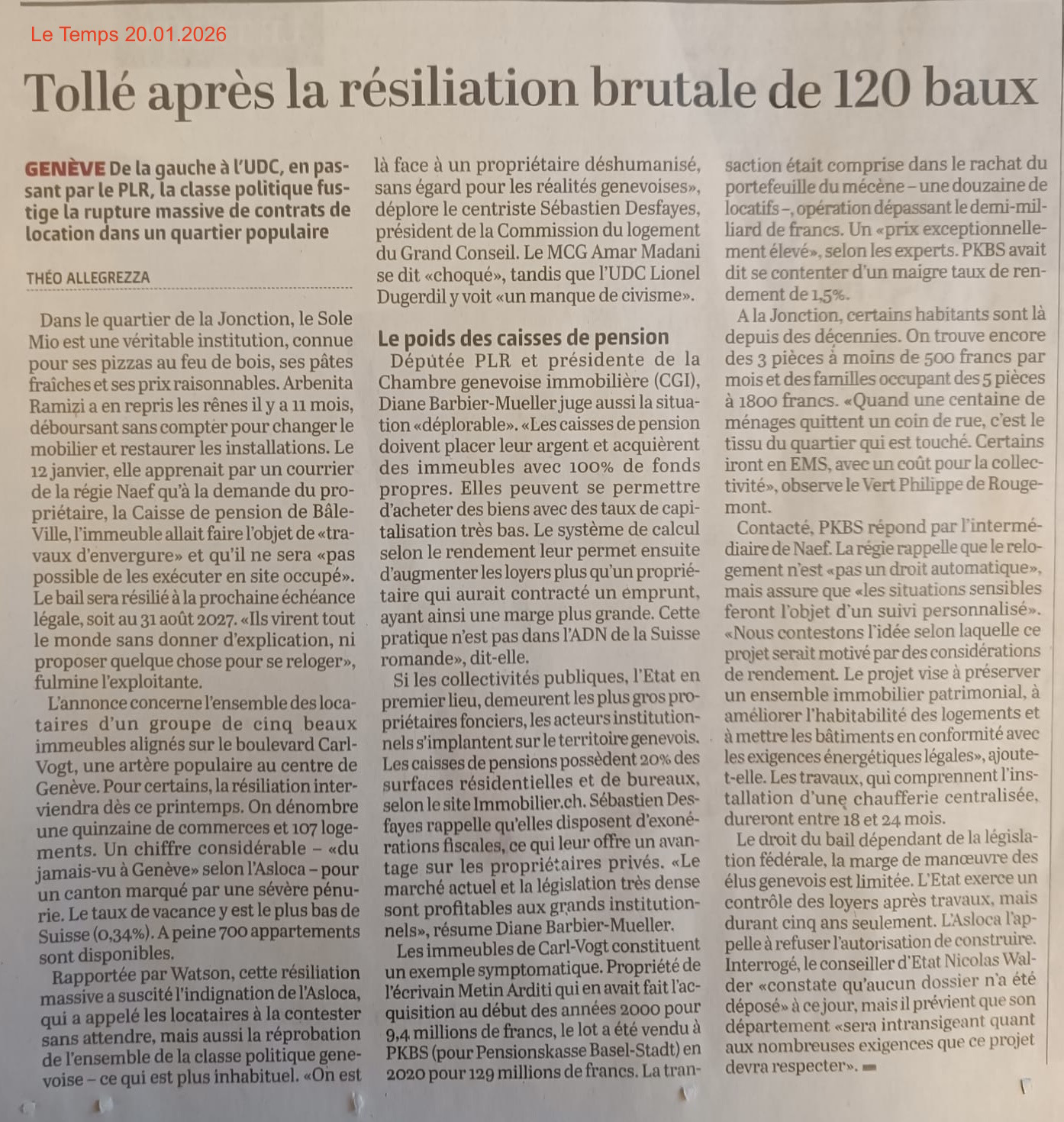 Tribune de Genève, 20 janvier 2026